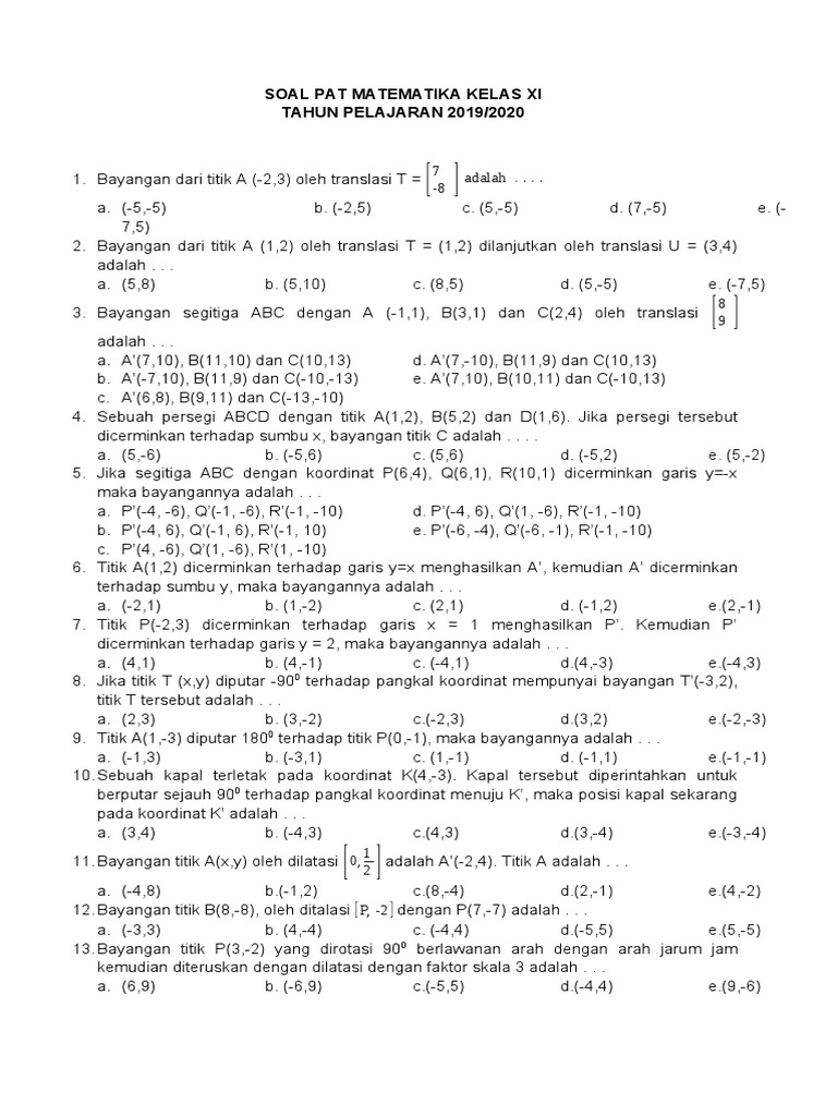 Dalam setiap pembelajaran, siswa dituntut untuk bisa mengisi soal soal pat dengan baik, mudah mudahan contoh soal pat tahun 2019/2020 yan. Pengumpulan informasi tersebut ditempuh melalui berbagai teknik penilaian, menggunakan berbagai. 18 des 2019 soal pat matematika. Penilaian adalah proses pengumpulan dan pengolahan informasi untuk mengukur pencapaian hasil belajar peserta didik. Semoga bisa menjadi referensi dan wawasan dalam mengerjakan latihan soal.